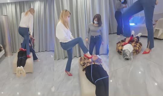 7双高跟鞋全体重踩踏,细跟插入肚子特写