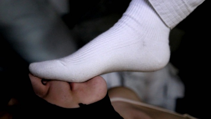 【芊芊】跆拳道女主臭脚白袜爆踢活靶母狗